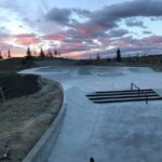 In the past month, two pump track have opened. What is a pump track? It’s a closed loop track that has a lot of humps that can be pumped in order to maintain speed. They kind of look like a snake run or skatepark. They’re primarily geared towards bikes, but skateboards are allowed on them. We recommend using larger, soft wheels for maximum speed as the asphalt surface at both parks can seem a little slow with smaller wheels.